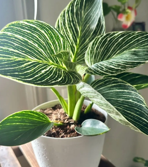 Elevate your décor with the Philodendron Birkin Plant, featuring unique dark green leaves with elegant white pinstripes. Perfect for indoor spaces, this low-maintenance plant adds a modern and stylish touch.